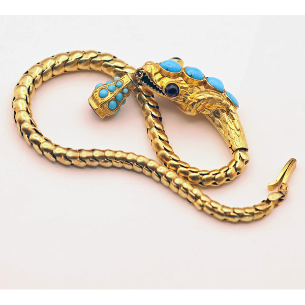For thousands of years, snakes have been popular in jewelry, symbolising eternal life amongst many other features. From the earliest part of the Victorian era, snakes were wildly trending, not least because of Victoria's snake engagement ring. This is a fabulously well-made and wearable bracelet, as versatile and lovely today as it was over 150 years ago. Wear it with any outfit, at any age.