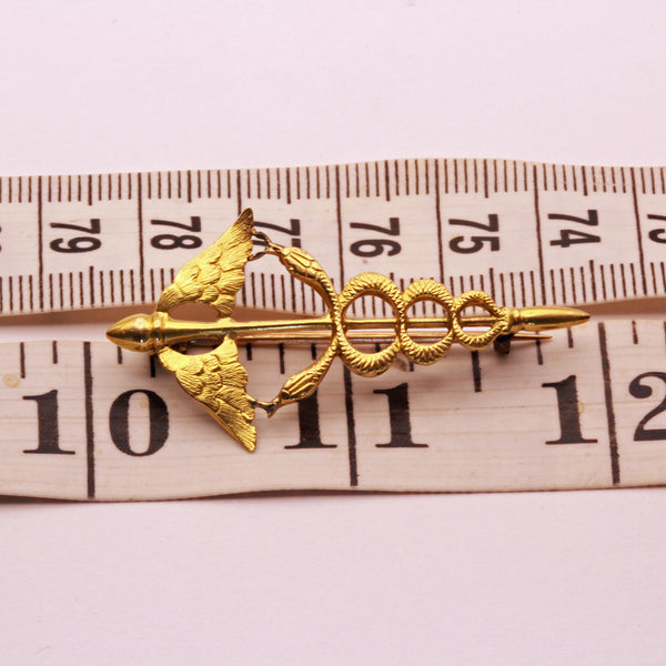 Antique Victorian Caduceus brooch. 18k gold. Made 19th century.