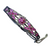 Mounted in vermeil, beautiful, bright pink natural rubies with an overlapping, scrolling pattern on the sides, leading to a central flower with raised center. Rubies are a great, bright pink color and good quality natural stones. Very secure, unusual clasp that fits well and has the addition of a safety chain, indicating the perceived value & quality of the item when it was made.