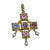 Pendant cross with a distinctly Renaissance form - 3 dimentional with rich, colorful gems and enamel work. Formed by 5 partially openwork pyramidal blocks that form the cross. While all of these sections are in high relief, the central block is subtly raised higher than those forming the transepts. Each block is flat on top and set with a colorful gem. The sides are adorned with exceptionally fine enamel work on gold - a half circle of white enamel painted with a black enamelled pattern. This style of opaque enamelling on gold was derived from Renaissance gold work.