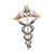 The snakes loop around one another, forming loops that increase in size as the snake climb the pole. Heads point outwards, forked tongues extended. Bodies of snakes are enamelled in black, forming a diamond pattern with the gold base. Stunningly attractive. Above the serpents, is the traditional pair of extended wings. Enamelled in orange, blue, white and red, with engine turned backgrounds to some of the enamelling, adding very subtle, shiny interest. Outstanding quality of the workmanship. Beautiful design, top quality workmanship, great sheen and shine - the perfect brooch for any doctor.