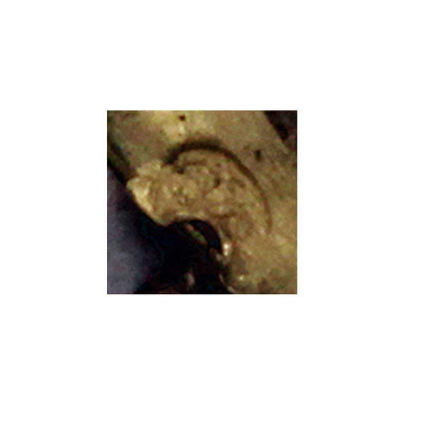 Marks and Metal: Gold was electronically and acid tested to ensure metal purity. Behind the pin, partially obliterated, is an oval mark with what appears to be a C and a G, the mark of the Giuliano family. It is very likekly that the pin was replaced.