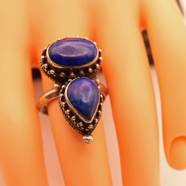 Vintage - antique ring. Silver and lapis lazuli. Made in Nepal, first half of 20th century. Double gem richly symbolic in Hindu culture (see below).