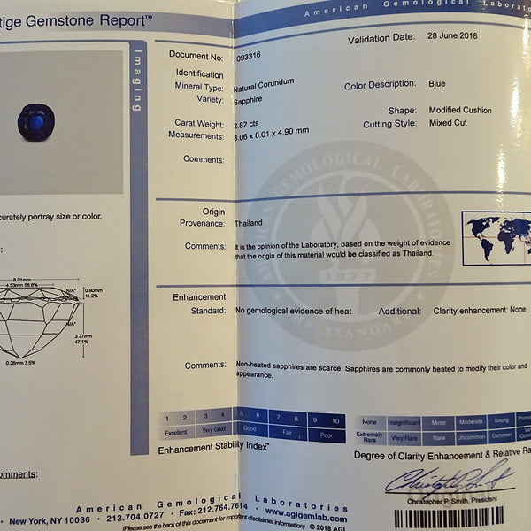 AGL certificate describes ring as 2.82ct, with no sign of heating.